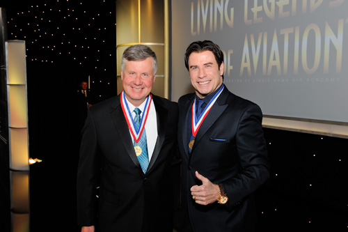 January 22, 2014, Albuquerque, NM: John Uczekaj, president and CEO of Aspen Avionics was inducted into the Living Legends of Aviation at its annual gala on at the Beverly Hilton. Among a star-studded audience, Uczekaj accepted his award from John Travolta, an advocate and supporter of general and business aviation. He was one among seven inductees at this year’s event produced by the Kiddie Hawk Air Academy.